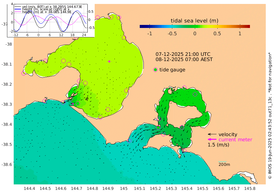 -33cm San Remo -15cm Elizabeth Island -4cm Bouchier Channel 6cm Tooradin -32cm Cowes Jetty -26cm Western Port (Stony Point) 0cm Western Port (Sandy Point) -50cm Flinders Jetty 28cm Mornington 29cm Sandringham 26cm Rosebud Jetty 25cm Hovell Pile 4cm South Channel -22cm Point Lonsdale -3cm Queenscliff 25cm West Channel Pile -41cm Barwon Heads 25cm St Leonards 29cm Point Richards (Corio Bay) 27cm Point Richards Channel 31cm Geelong 24cm Werribee 28cm Altona 29cm Wilson Spit 28cm Melbourne (Williamstown) 28cm St Kilda
