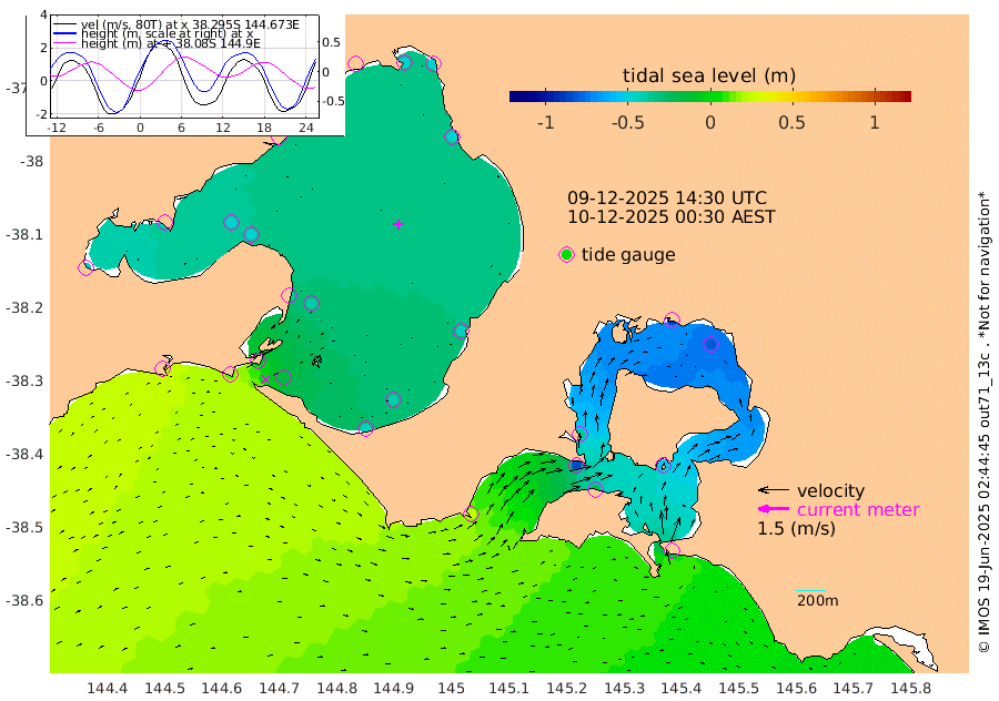 -34cm San Remo -56cm Elizabeth Island -80cm Bouchier Channel -90cm Tooradin -24cm Cowes Jetty -34cm Western Port (Stony Point) -86cm Western Port (Sandy Point) 24cm Flinders Jetty -43cm Mornington -46cm Sandringham -42cm Rosebud Jetty -41cm Hovell Pile -18cm South Channel 11cm Point Lonsdale -9cm Queenscliff -41cm West Channel Pile 31cm Barwon Heads -41cm St Leonards -47cm Point Richards (Corio Bay) -45cm Point Richards Channel -51cm Geelong -39cm Werribee -46cm Altona -48cm Wilson Spit -46cm Melbourne (Williamstown) -47cm St Kilda