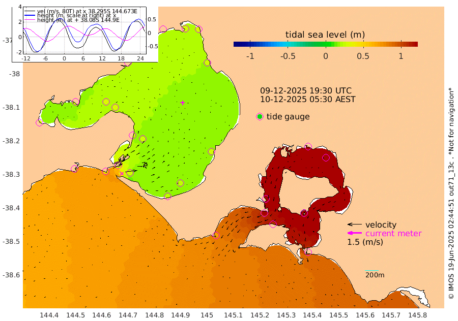 116cm San Remo 121cm Elizabeth Island 148cm Bouchier Channel 145cm Tooradin 109cm Cowes Jetty 117cm Western Port (Stony Point) 144cm Western Port (Sandy Point) 69cm Flinders Jetty 28cm Mornington 29cm Sandringham 25cm Rosebud Jetty 26cm Hovell Pile 30cm South Channel 42cm Point Lonsdale 31cm Queenscliff 27cm West Channel Pile 49cm Barwon Heads 29cm St Leonards 32cm Point Richards (Corio Bay) 33cm Point Richards Channel 32cm Geelong 25cm Werribee 30cm Altona 34cm Wilson Spit 29cm Melbourne (Williamstown) 31cm St Kilda