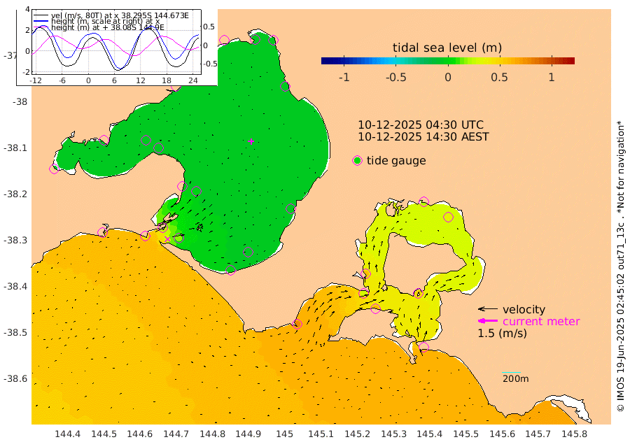 60cm San Remo 49cm Elizabeth Island 34cm Bouchier Channel 21cm Tooradin 61cm Cowes Jetty 56cm Western Port (Stony Point) 28cm Western Port (Sandy Point) 77cm Flinders Jetty -7cm Mornington -5cm Sandringham -3cm Rosebud Jetty -4cm Hovell Pile 18cm South Channel 45cm Point Lonsdale 27cm Queenscliff -3cm West Channel Pile 54cm Barwon Heads -5cm St Leonards -6cm Point Richards (Corio Bay) -7cm Point Richards Channel -10cm Geelong -4cm Werribee -6cm Altona -10cm Wilson Spit -6cm Melbourne (Williamstown) -6cm St Kilda