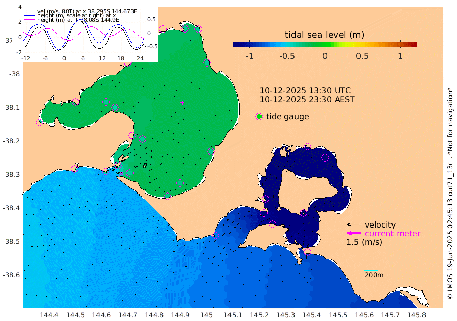 -119cm San Remo -127cm Elizabeth Island -148cm Bouchier Channel -143cm Tooradin -111cm Cowes Jetty -119cm Western Port (Stony Point) -144cm Western Port (Sandy Point) -72cm Flinders Jetty -34cm Mornington -37cm Sandringham -33cm Rosebud Jetty -33cm Hovell Pile -36cm South Channel -44cm Point Lonsdale -37cm Queenscliff -34cm West Channel Pile -43cm Barwon Heads -34cm St Leonards -38cm Point Richards (Corio Bay) -37cm Point Richards Channel -39cm Geelong -32cm Werribee -37cm Altona -38cm Wilson Spit -36cm Melbourne (Williamstown) -37cm St Kilda
