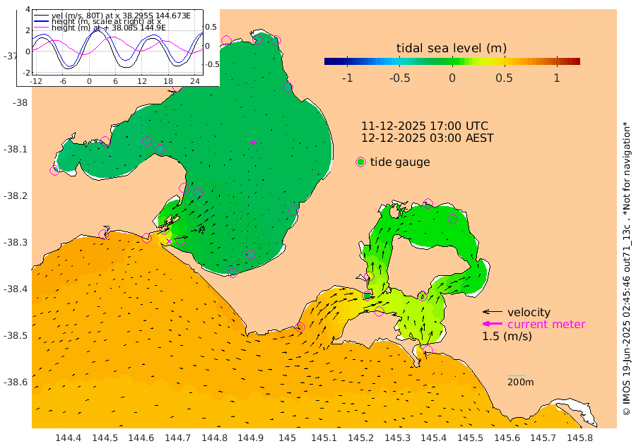 36cm San Remo 16cm Elizabeth Island -3cm Bouchier Channel -15cm Tooradin 41cm Cowes Jetty 35cm Western Port (Stony Point) -9cm Western Port (Sandy Point) 73cm Flinders Jetty -25cm Mornington -27cm Sandringham -24cm Rosebud Jetty -23cm Hovell Pile 4cm South Channel 42cm Point Lonsdale 16cm Queenscliff -23cm West Channel Pile 65cm Barwon Heads -21cm St Leonards -28cm Point Richards (Corio Bay) -25cm Point Richards Channel -32cm Geelong -23cm Werribee -26cm Altona -27cm Wilson Spit -27cm Melbourne (Williamstown) -27cm St Kilda