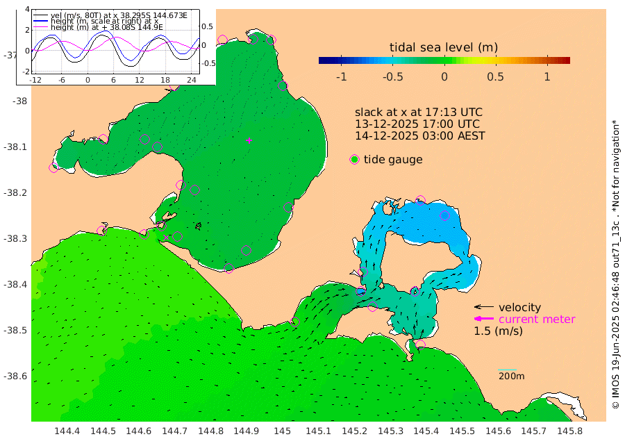 -31cm San Remo -41cm Elizabeth Island -65cm Bouchier Channel -69cm Tooradin -24cm Cowes Jetty -31cm Western Port (Stony Point) -63cm Western Port (Sandy Point) 8cm Flinders Jetty -18cm Mornington -21cm Sandringham -17cm Rosebud Jetty -18cm Hovell Pile -7cm South Channel 7cm Point Lonsdale -1cm Queenscliff -19cm West Channel Pile 15cm Barwon Heads -17cm St Leonards -23cm Point Richards (Corio Bay) -21cm Point Richards Channel -25cm Geelong -20cm Werribee -21cm Altona -22cm Wilson Spit -22cm Melbourne (Williamstown) -22cm St Kilda