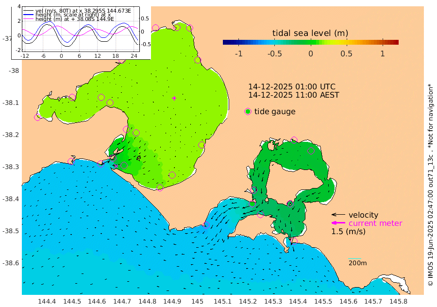 -36cm San Remo -22cm Elizabeth Island -4cm Bouchier Channel 3cm Tooradin -40cm Cowes Jetty -37cm Western Port (Stony Point) -2cm Western Port (Sandy Point) -62cm Flinders Jetty 20cm Mornington 21cm Sandringham 18cm Rosebud Jetty 18cm Hovell Pile -6cm South Channel -36cm Point Lonsdale -15cm Queenscliff 18cm West Channel Pile -51cm Barwon Heads 16cm St Leonards 21cm Point Richards (Corio Bay) 20cm Point Richards Channel 25cm Geelong 18cm Werribee 21cm Altona 22cm Wilson Spit 21cm Melbourne (Williamstown) 21cm St Kilda