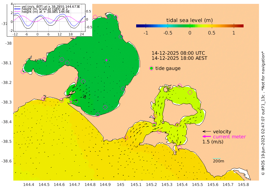 41cm San Remo 31cm Elizabeth Island 25cm Bouchier Channel 18cm Tooradin 43cm Cowes Jetty 43cm Western Port (Stony Point) 18cm Western Port (Sandy Point) 54cm Flinders Jetty -17cm Mornington -16cm Sandringham -16cm Rosebud Jetty -15cm Hovell Pile 5cm South Channel 28cm Point Lonsdale 12cm Queenscliff -14cm West Channel Pile 41cm Barwon Heads -15cm St Leonards -17cm Point Richards (Corio Bay) -16cm Point Richards Channel -19cm Geelong -13cm Werribee -16cm Altona -19cm Wilson Spit -16cm Melbourne (Williamstown) -16cm St Kilda