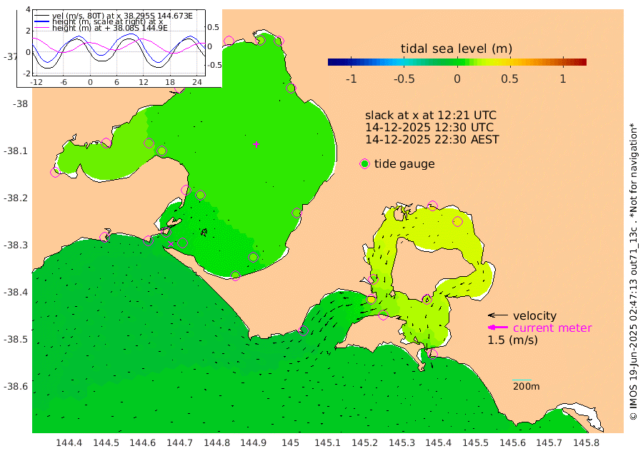 15cm San Remo 22cm Elizabeth Island 36cm Bouchier Channel 44cm Tooradin 10cm Cowes Jetty 12cm Western Port (Stony Point) 42cm Western Port (Sandy Point) -13cm Flinders Jetty 12cm Mornington 13cm Sandringham 12cm Rosebud Jetty 12cm Hovell Pile 3cm South Channel -8cm Point Lonsdale -2cm Queenscliff 13cm West Channel Pile -15cm Barwon Heads 12cm St Leonards 16cm Point Richards (Corio Bay) 14cm Point Richards Channel 18cm Geelong 13cm Werribee 14cm Altona 15cm Wilson Spit 15cm Melbourne (Williamstown) 15cm St Kilda