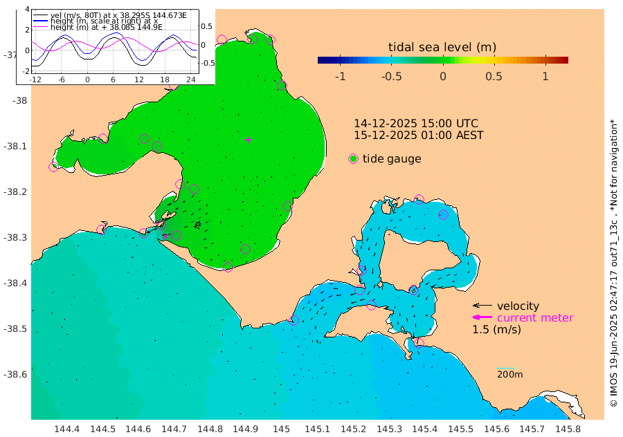 -56cm San Remo -50cm Elizabeth Island -56cm Bouchier Channel -49cm Tooradin -52cm Cowes Jetty -57cm Western Port (Stony Point) -48cm Western Port (Sandy Point) -49cm Flinders Jetty 1cm Mornington -1cm Sandringham 1cm Rosebud Jetty 0cm Hovell Pile -11cm South Channel -26cm Point Lonsdale -15cm Queenscliff -1cm West Channel Pile -34cm Barwon Heads 0cm St Leonards 0cm Point Richards (Corio Bay) -1cm Point Richards Channel 1cm Geelong -1cm Werribee -1cm Altona 0cm Wilson Spit 0cm Melbourne (Williamstown) 0cm St Kilda