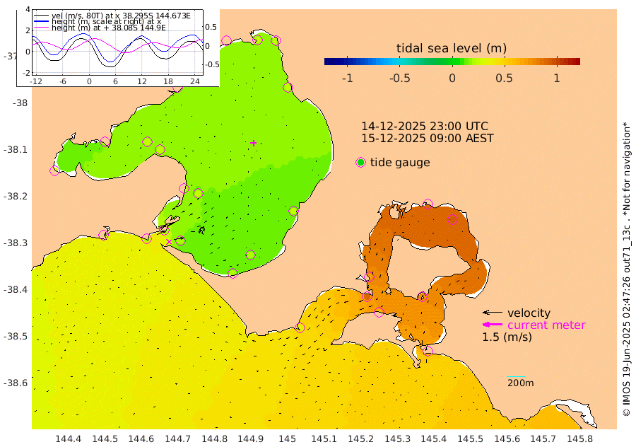 69cm San Remo 73cm Elizabeth Island 90cm Bouchier Channel 88cm Tooradin 60cm Cowes Jetty 68cm Western Port (Stony Point) 88cm Western Port (Sandy Point) 36cm Flinders Jetty 23cm Mornington 25cm Sandringham 22cm Rosebud Jetty 22cm Hovell Pile 19cm South Channel 20cm Point Lonsdale 19cm Queenscliff 23cm West Channel Pile 20cm Barwon Heads 23cm St Leonards 26cm Point Richards (Corio Bay) 26cm Point Richards Channel 26cm Geelong 22cm Werribee 25cm Altona 28cm Wilson Spit 24cm Melbourne (Williamstown) 25cm St Kilda