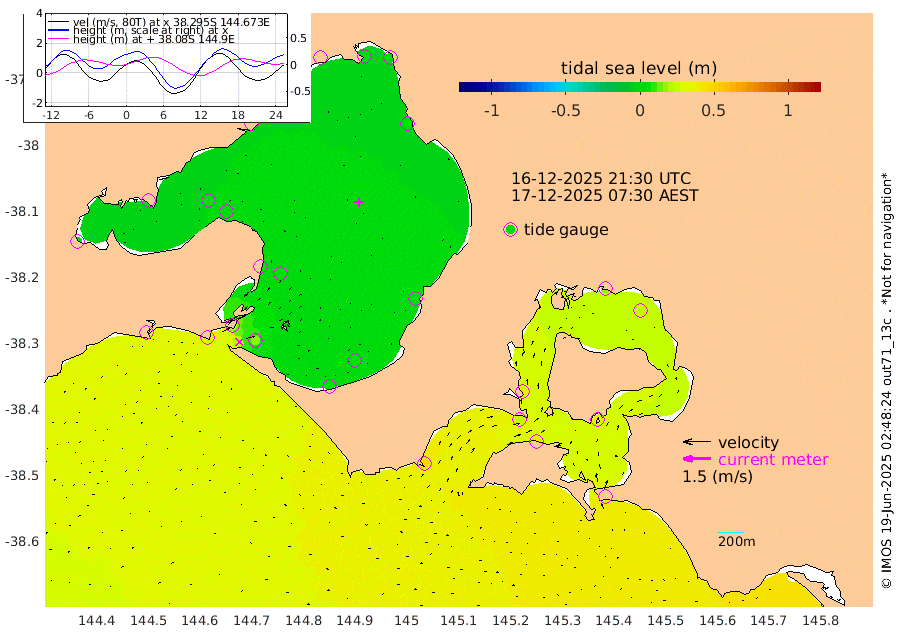38cm San Remo 35cm Elizabeth Island 24cm Bouchier Channel 17cm Tooradin 38cm Cowes Jetty 41cm Western Port (Stony Point) 23cm Western Port (Sandy Point) 47cm Flinders Jetty 5cm Mornington 4cm Sandringham 6cm Rosebud Jetty 5cm Hovell Pile 15cm South Channel 29cm Point Lonsdale 21cm Queenscliff 5cm West Channel Pile 34cm Barwon Heads 6cm St Leonards 3cm Point Richards (Corio Bay) 4cm Point Richards Channel 1cm Geelong 2cm Werribee 3cm Altona 4cm Wilson Spit 3cm Melbourne (Williamstown) 3cm St Kilda