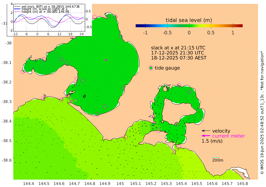 13cm San Remo 13cm Elizabeth Island -3cm Bouchier Channel -8cm Tooradin 15cm Cowes Jetty 17cm Western Port (Stony Point) -2cm Western Port (Sandy Point) 29cm Flinders Jetty 5cm Mornington 3cm Sandringham 5cm Rosebud Jetty 4cm Hovell Pile 11cm South Channel 19cm Point Lonsdale 16cm Queenscliff 4cm West Channel Pile 21cm Barwon Heads 5cm St Leonards 2cm Point Richards (Corio Bay) 3cm Point Richards Channel 0cm Geelong 1cm Werribee 2cm Altona 3cm Wilson Spit 2cm Melbourne (Williamstown) 2cm St Kilda