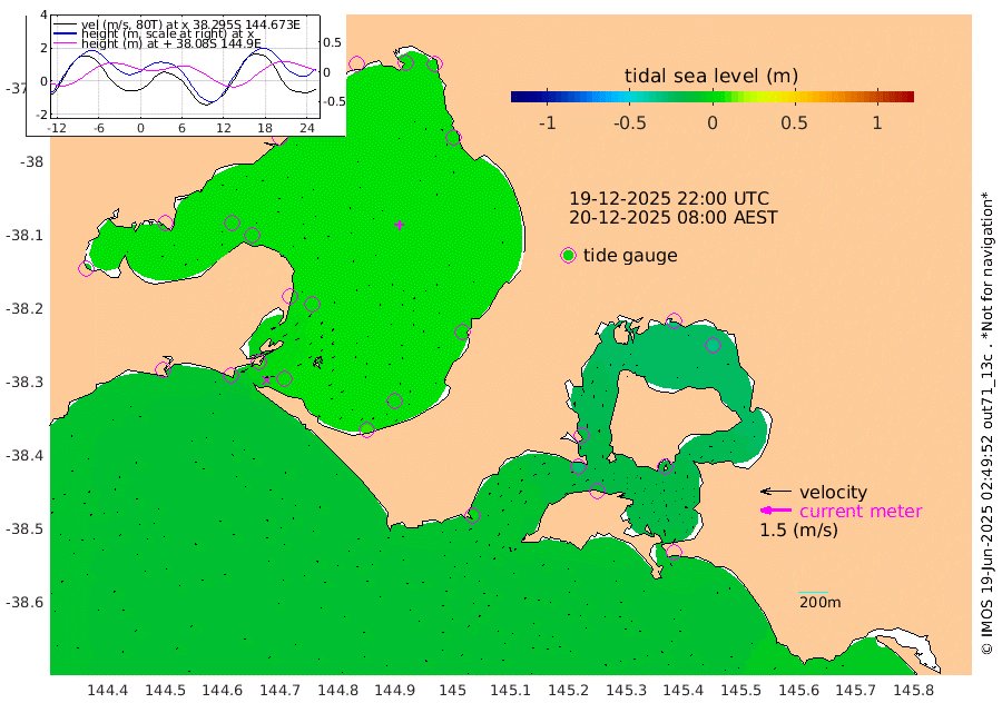 -17cm San Remo -14cm Elizabeth Island -30cm Bouchier Channel -33cm Tooradin -15cm Cowes Jetty -14cm Western Port (Stony Point) -27cm Western Port (Sandy Point) 0cm Flinders Jetty 7cm Mornington 5cm Sandringham 8cm Rosebud Jetty 7cm Hovell Pile 7cm South Channel 4cm Point Lonsdale 8cm Queenscliff 6cm West Channel Pile -2cm Barwon Heads 6cm St Leonards 5cm Point Richards (Corio Bay) 4cm Point Richards Channel 4cm Geelong 4cm Werribee 4cm Altona 4cm Wilson Spit 5cm Melbourne (Williamstown) 5cm St Kilda
