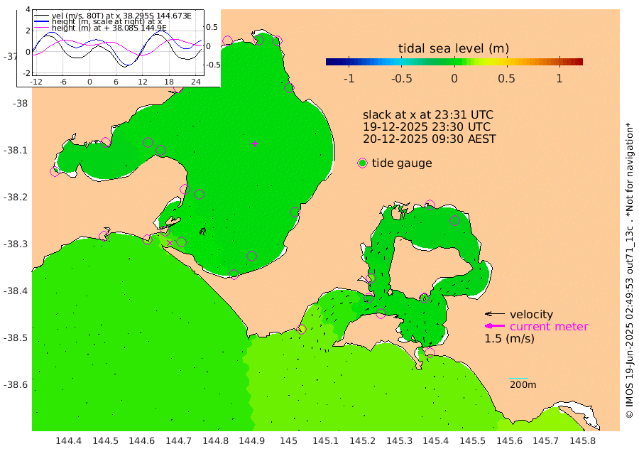 12cm San Remo 11cm Elizabeth Island -4cm Bouchier Channel -11cm Tooradin 10cm Cowes Jetty 11cm Western Port (Stony Point) -3cm Western Port (Sandy Point) 24cm Flinders Jetty 4cm Mornington 3cm Sandringham 6cm Rosebud Jetty 5cm Hovell Pile 11cm South Channel 16cm Point Lonsdale 14cm Queenscliff 5cm West Channel Pile 15cm Barwon Heads 4cm St Leonards 3cm Point Richards (Corio Bay) 2cm Point Richards Channel 1cm Geelong 2cm Werribee 2cm Altona 2cm Wilson Spit 3cm Melbourne (Williamstown) 3cm St Kilda