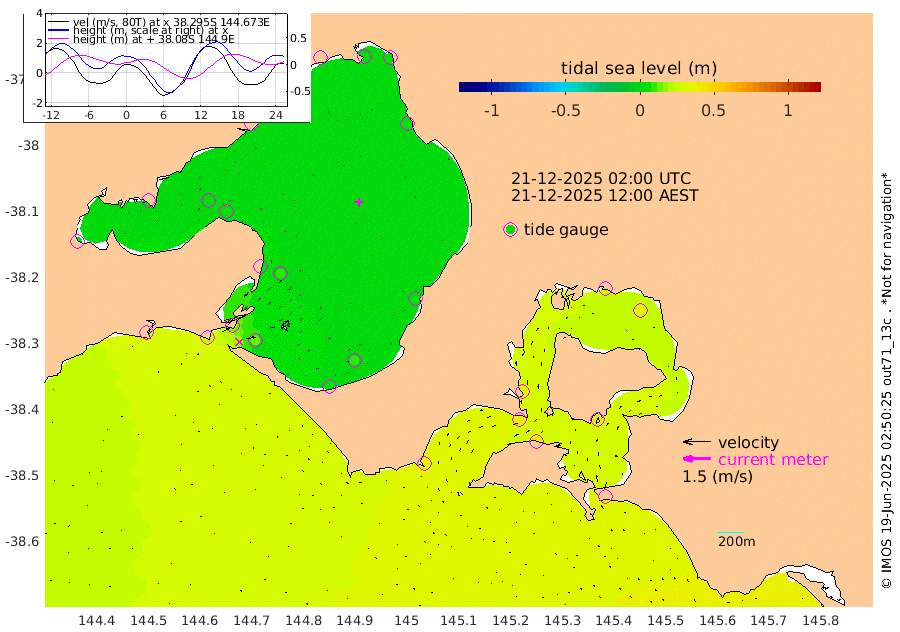 42cm San Remo 38cm Elizabeth Island 34cm Bouchier Channel 27cm Tooradin 36cm Cowes Jetty 37cm Western Port (Stony Point) 35cm Western Port (Sandy Point) 36cm Flinders Jetty 5cm Mornington 6cm Sandringham 7cm Rosebud Jetty 8cm Hovell Pile 14cm South Channel 22cm Point Lonsdale 17cm Queenscliff 8cm West Channel Pile 25cm Barwon Heads 5cm St Leonards 7cm Point Richards (Corio Bay) 6cm Point Richards Channel 5cm Geelong 5cm Werribee 6cm Altona 5cm Wilson Spit 7cm Melbourne (Williamstown) 7cm St Kilda