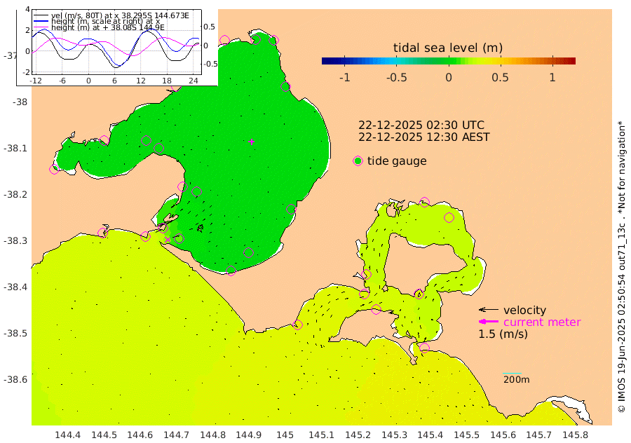 42cm San Remo 37cm Elizabeth Island 30cm Bouchier Channel 21cm Tooradin 37cm Cowes Jetty 36cm Western Port (Stony Point) 31cm Western Port (Sandy Point) 39cm Flinders Jetty 3cm Mornington 3cm Sandringham 5cm Rosebud Jetty 5cm Hovell Pile 14cm South Channel 24cm Point Lonsdale 18cm Queenscliff 5cm West Channel Pile 28cm Barwon Heads 3cm St Leonards 4cm Point Richards (Corio Bay) 3cm Point Richards Channel 2cm Geelong 2cm Werribee 3cm Altona 1cm Wilson Spit 4cm Melbourne (Williamstown) 4cm St Kilda