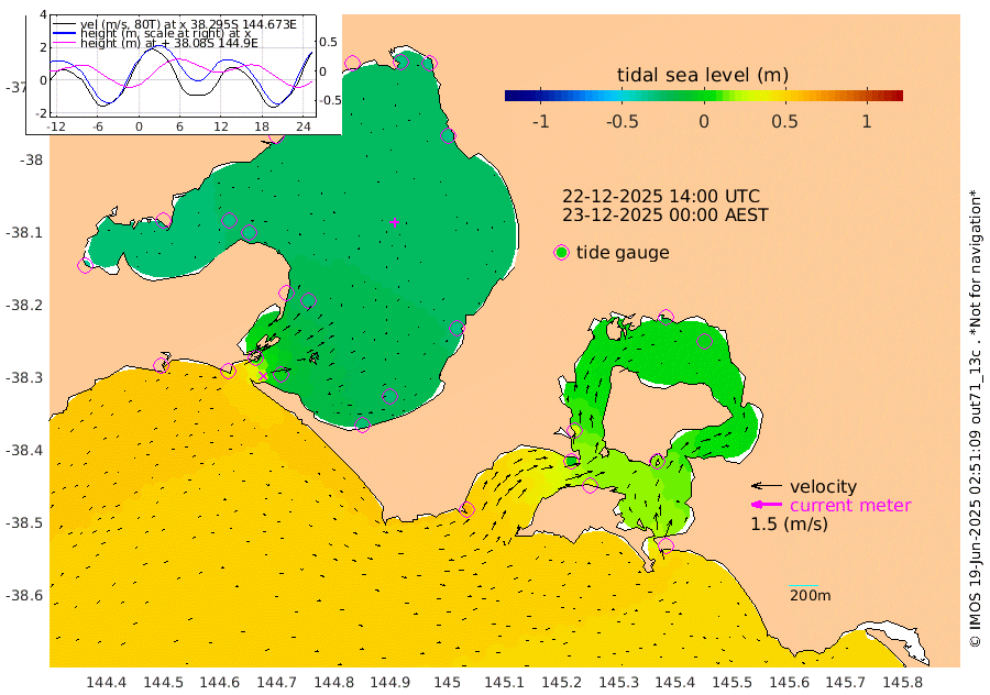 32cm San Remo 16cm Elizabeth Island -1cm Bouchier Channel -12cm Tooradin 34cm Cowes Jetty 27cm Western Port (Stony Point) -2cm Western Port (Sandy Point) 60cm Flinders Jetty -30cm Mornington -31cm Sandringham -29cm Rosebud Jetty -28cm Hovell Pile -3cm South Channel 32cm Point Lonsdale 7cm Queenscliff -28cm West Channel Pile 53cm Barwon Heads -27cm St Leonards -33cm Point Richards (Corio Bay) -30cm Point Richards Channel -36cm Geelong -33cm Werribee -31cm Altona -32cm Wilson Spit -32cm Melbourne (Williamstown) -32cm St Kilda