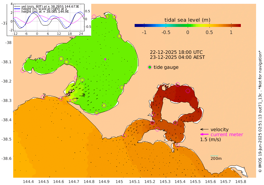 95cm San Remo 94cm Elizabeth Island 115cm Bouchier Channel 111cm Tooradin 89cm Cowes Jetty 95cm Western Port (Stony Point) 111cm Western Port (Sandy Point) 64cm Flinders Jetty 21cm Mornington 23cm Sandringham 19cm Rosebud Jetty 20cm Hovell Pile 27cm South Channel 42cm Point Lonsdale 29cm Queenscliff 21cm West Channel Pile 48cm Barwon Heads 23cm St Leonards 25cm Point Richards (Corio Bay) 25cm Point Richards Channel 25cm Geelong 19cm Werribee 24cm Altona 26cm Wilson Spit 22cm Melbourne (Williamstown) 23cm St Kilda