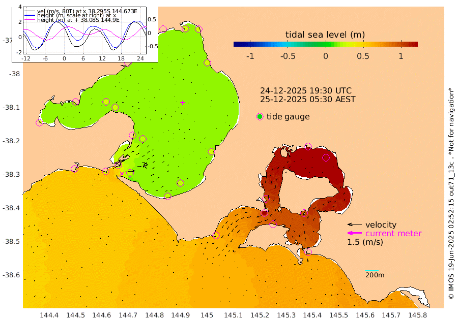 91cm San Remo 96cm Elizabeth Island 120cm Bouchier Channel 119cm Tooradin 85cm Cowes Jetty 93cm Western Port (Stony Point) 117cm Western Port (Sandy Point) 52cm Flinders Jetty 27cm Mornington 29cm Sandringham 24cm Rosebud Jetty 25cm Hovell Pile 25cm South Channel 34cm Point Lonsdale 26cm Queenscliff 26cm West Channel Pile 37cm Barwon Heads 28cm St Leonards 30cm Point Richards (Corio Bay) 30cm Point Richards Channel 30cm Geelong 22cm Werribee 29cm Altona 32cm Wilson Spit 27cm Melbourne (Williamstown) 29cm St Kilda