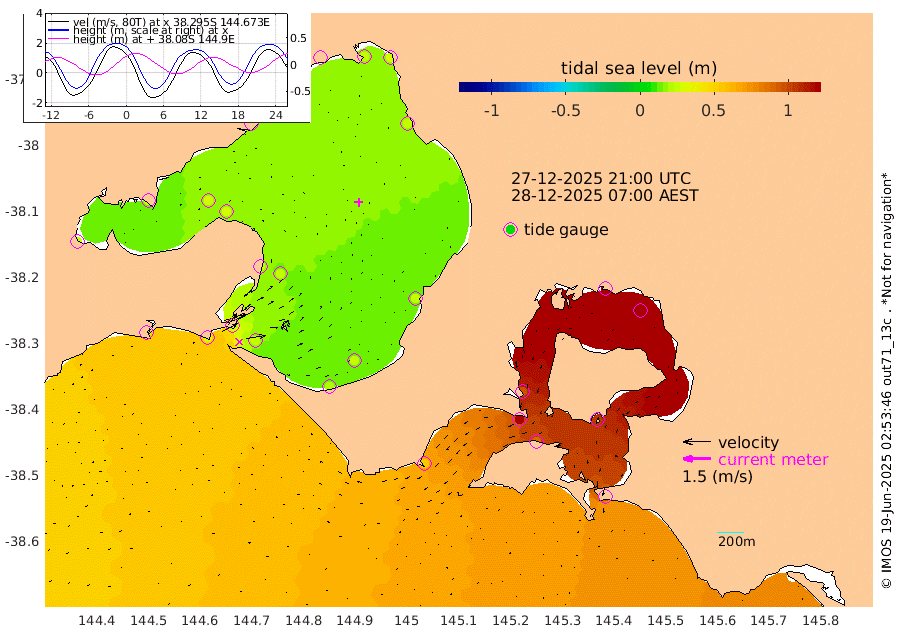 97cm San Remo 103cm Elizabeth Island 124cm Bouchier Channel 121cm Tooradin 88cm Cowes Jetty 97cm Western Port (Stony Point) 122cm Western Port (Sandy Point) 54cm Flinders Jetty 25cm Mornington 26cm Sandringham 22cm Rosebud Jetty 23cm Hovell Pile 24cm South Channel 31cm Point Lonsdale 25cm Queenscliff 24cm West Channel Pile 36cm Barwon Heads 26cm St Leonards 28cm Point Richards (Corio Bay) 29cm Point Richards Channel 28cm Geelong 20cm Werribee 27cm Altona 30cm Wilson Spit 25cm Melbourne (Williamstown) 27cm St Kilda