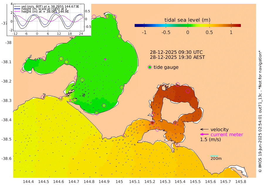 84cm San Remo 87cm Elizabeth Island 102cm Bouchier Channel 103cm Tooradin 71cm Cowes Jetty 79cm Western Port (Stony Point) 107cm Western Port (Sandy Point) 41cm Flinders Jetty 13cm Mornington 16cm Sandringham 14cm Rosebud Jetty 14cm Hovell Pile 17cm South Channel 20cm Point Lonsdale 16cm Queenscliff 15cm West Channel Pile 22cm Barwon Heads 15cm St Leonards 18cm Point Richards (Corio Bay) 17cm Point Richards Channel 19cm Geelong 11cm Werribee 17cm Altona 17cm Wilson Spit 16cm Melbourne (Williamstown) 17cm St Kilda
