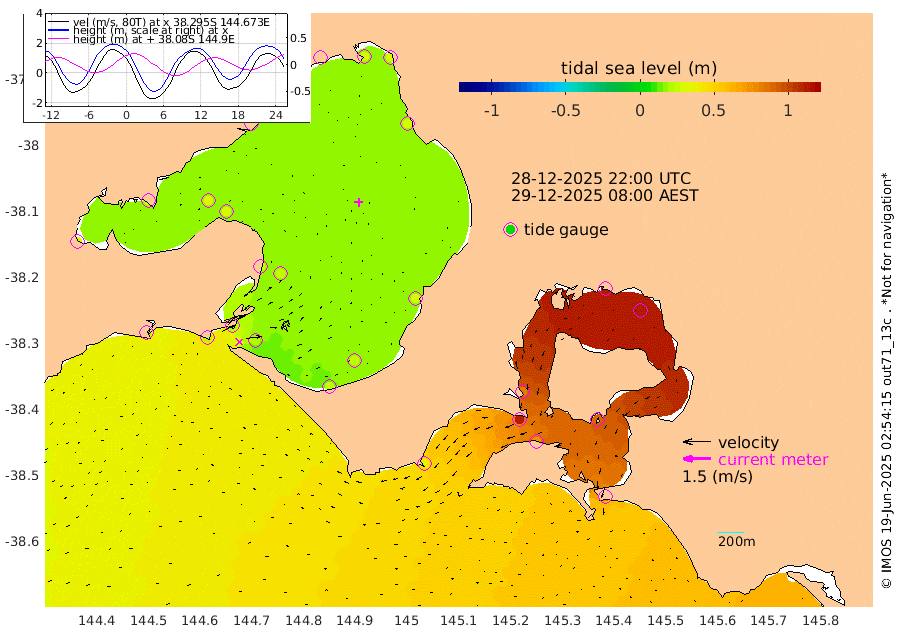 82cm San Remo 90cm Elizabeth Island 112cm Bouchier Channel 111cm Tooradin 72cm Cowes Jetty 81cm Western Port (Stony Point) 112cm Western Port (Sandy Point) 34cm Flinders Jetty 27cm Mornington 28cm Sandringham 24cm Rosebud Jetty 25cm Hovell Pile 21cm South Channel 19cm Point Lonsdale 19cm Queenscliff 26cm West Channel Pile 20cm Barwon Heads 27cm St Leonards 30cm Point Richards (Corio Bay) 31cm Point Richards Channel 31cm Geelong 22cm Werribee 29cm Altona 32cm Wilson Spit 28cm Melbourne (Williamstown) 29cm St Kilda