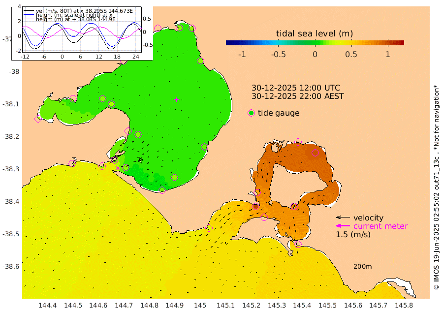 74cm San Remo 78cm Elizabeth Island 95cm Bouchier Channel 98cm Tooradin 62cm Cowes Jetty 67cm Western Port (Stony Point) 101cm Western Port (Sandy Point) 32cm Flinders Jetty 14cm Mornington 18cm Sandringham 15cm Rosebud Jetty 15cm Hovell Pile 15cm South Channel 17cm Point Lonsdale 14cm Queenscliff 16cm West Channel Pile 18cm Barwon Heads 16cm St Leonards 19cm Point Richards (Corio Bay) 18cm Point Richards Channel 21cm Geelong 12cm Werribee 18cm Altona 19cm Wilson Spit 18cm Melbourne (Williamstown) 18cm St Kilda