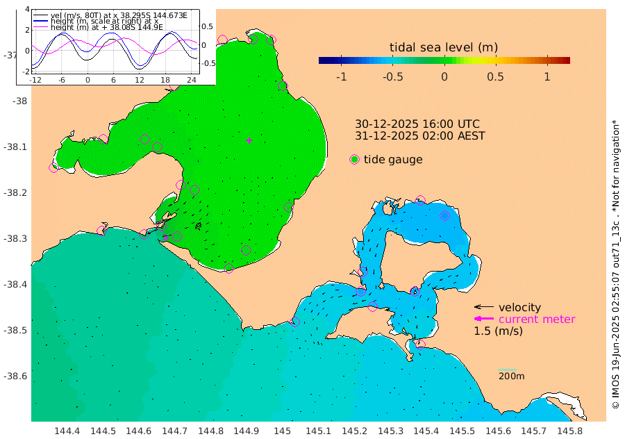 -62cm San Remo -61cm Elizabeth Island -67cm Bouchier Channel -60cm Tooradin -57cm Cowes Jetty -60cm Western Port (Stony Point) -62cm Western Port (Sandy Point) -45cm Flinders Jetty 3cm Mornington 2cm Sandringham 4cm Rosebud Jetty 3cm Hovell Pile -6cm South Channel -19cm Point Lonsdale -8cm Queenscliff 3cm West Channel Pile -28cm Barwon Heads 2cm St Leonards 3cm Point Richards (Corio Bay) 1cm Point Richards Channel 3cm Geelong 5cm Werribee 2cm Altona 2cm Wilson Spit 3cm Melbourne (Williamstown) 3cm St Kilda