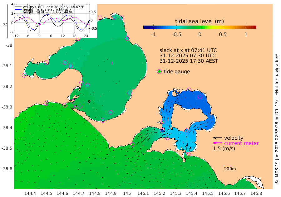 -46cm San Remo -57cm Elizabeth Island -77cm Bouchier Channel -82cm Tooradin -33cm Cowes Jetty -42cm Western Port (Stony Point) -86cm Western Port (Sandy Point) 3cm Flinders Jetty -37cm Mornington -38cm Sandringham -37cm Rosebud Jetty -37cm Hovell Pile -21cm South Channel -4cm Point Lonsdale -16cm Queenscliff -37cm West Channel Pile 6cm Barwon Heads -36cm St Leonards -42cm Point Richards (Corio Bay) -40cm Point Richards Channel -44cm Geelong -34cm Werribee -39cm Altona -42cm Wilson Spit -40cm Melbourne (Williamstown) -41cm St Kilda