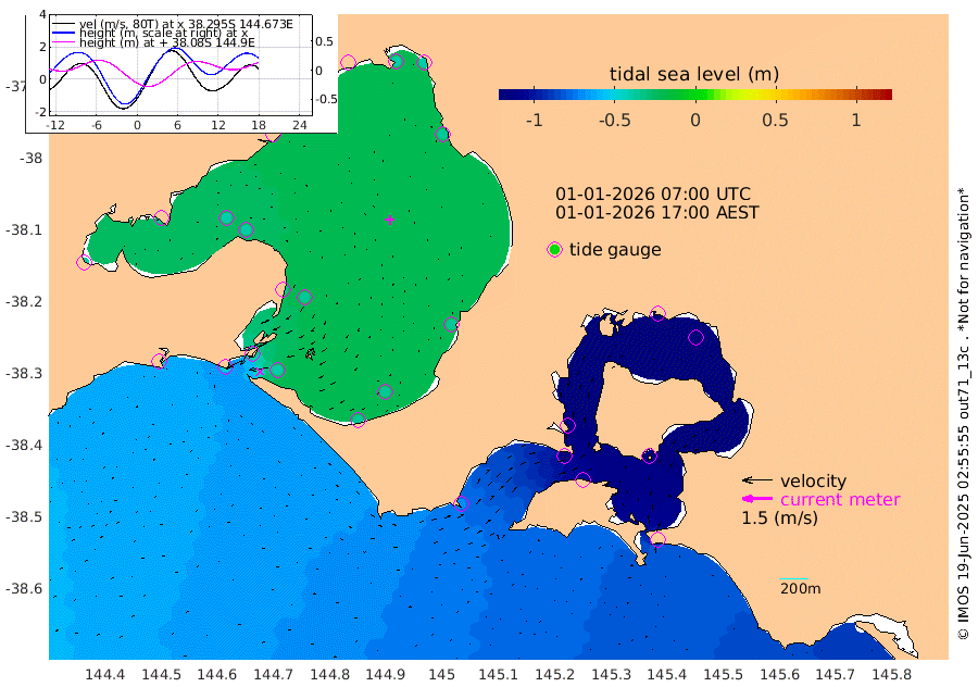 -117cm San Remo -122cm Elizabeth Island -135cm Bouchier Channel -130cm Tooradin -102cm Cowes Jetty -110cm Western Port (Stony Point) -141cm Western Port (Sandy Point) -71cm Flinders Jetty -35cm Mornington -37cm Sandringham -36cm Rosebud Jetty -36cm Hovell Pile -38cm South Channel -45cm Point Lonsdale -39cm Queenscliff -37cm West Channel Pile -46cm Barwon Heads -36cm St Leonards -40cm Point Richards (Corio Bay) -38cm Point Richards Channel -40cm Geelong -30cm Werribee -37cm Altona -40cm Wilson Spit -38cm Melbourne (Williamstown) -39cm St Kilda