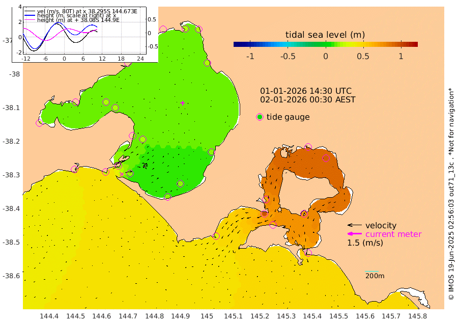 70cm San Remo 74cm Elizabeth Island 91cm Bouchier Channel 92cm Tooradin 61cm Cowes Jetty 64cm Western Port (Stony Point) 95cm Western Port (Sandy Point) 34cm Flinders Jetty 17cm Mornington 20cm Sandringham 17cm Rosebud Jetty 18cm Hovell Pile 18cm South Channel 23cm Point Lonsdale 17cm Queenscliff 19cm West Channel Pile 24cm Barwon Heads 18cm St Leonards 22cm Point Richards (Corio Bay) 21cm Point Richards Channel 23cm Geelong 14cm Werribee 21cm Altona 22cm Wilson Spit 20cm Melbourne (Williamstown) 21cm St Kilda