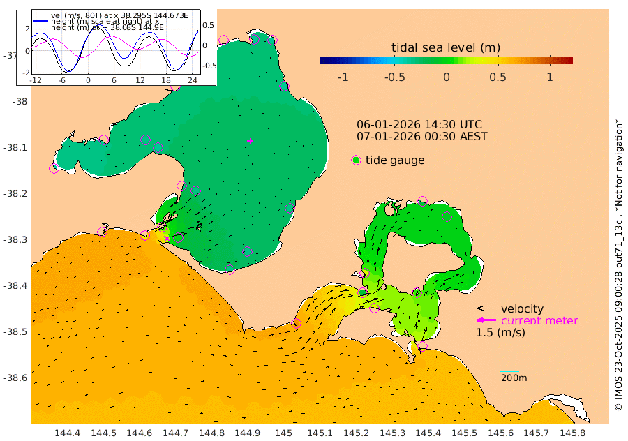 33cm San Remo 10cm Elizabeth Island -6cm Bouchier Channel -20cm Tooradin 37cm Cowes Jetty 31cm Western Port (Stony Point) -14cm Western Port (Sandy Point) 72cm Flinders Jetty -34cm Mornington -36cm Sandringham -32cm Rosebud Jetty -31cm Hovell Pile -1cm South Channel 40cm Point Lonsdale 11cm Queenscliff -31cm West Channel Pile 65cm Barwon Heads -30cm St Leonards -36cm Point Richards (Corio Bay) -34cm Point Richards Channel -40cm Geelong -31cm Werribee -35cm Altona -36cm Wilson Spit -35cm Melbourne (Williamstown) -35cm St Kilda