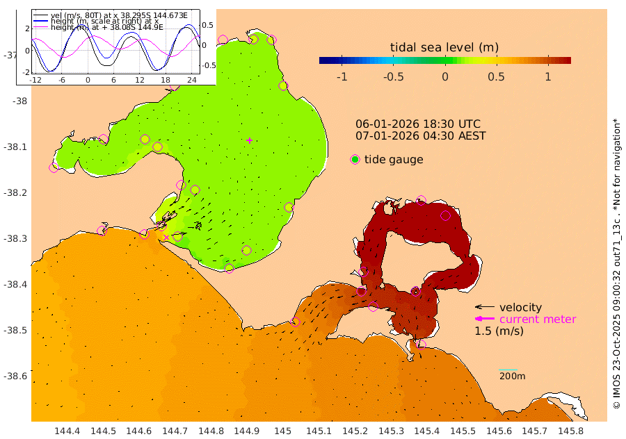 108cm San Remo 111cm Elizabeth Island 137cm Bouchier Channel 132cm Tooradin 102cm Cowes Jetty 108cm Western Port (Stony Point) 132cm Western Port (Sandy Point) 65cm Flinders Jetty 27cm Mornington 27cm Sandringham 24cm Rosebud Jetty 25cm Hovell Pile 29cm South Channel 41cm Point Lonsdale 30cm Queenscliff 26cm West Channel Pile 48cm Barwon Heads 28cm St Leonards 30cm Point Richards (Corio Bay) 31cm Point Richards Channel 31cm Geelong 23cm Werribee 29cm Altona 32cm Wilson Spit 27cm Melbourne (Williamstown) 29cm St Kilda
