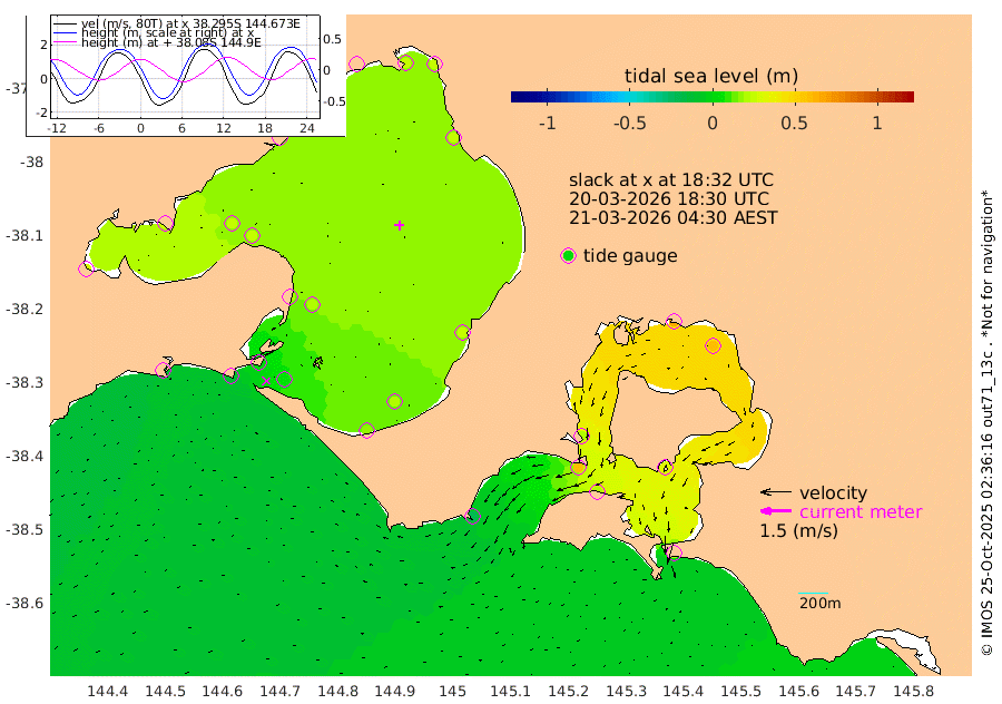 21cm San Remo 32cm Elizabeth Island 60cm Bouchier Channel 67cm Tooradin 20cm Cowes Jetty 22cm Western Port (Stony Point) 57cm Western Port (Sandy Point) -19cm Flinders Jetty 23cm Mornington 24cm Sandringham 19cm Rosebud Jetty 20cm Hovell Pile 4cm South Channel -11cm Point Lonsdale -1cm Queenscliff 20cm West Channel Pile -19cm Barwon Heads 21cm St Leonards 25cm Point Richards (Corio Bay) 25cm Point Richards Channel 28cm Geelong 21cm Werribee 25cm Altona 27cm Wilson Spit 24cm Melbourne (Williamstown) 24cm St Kilda