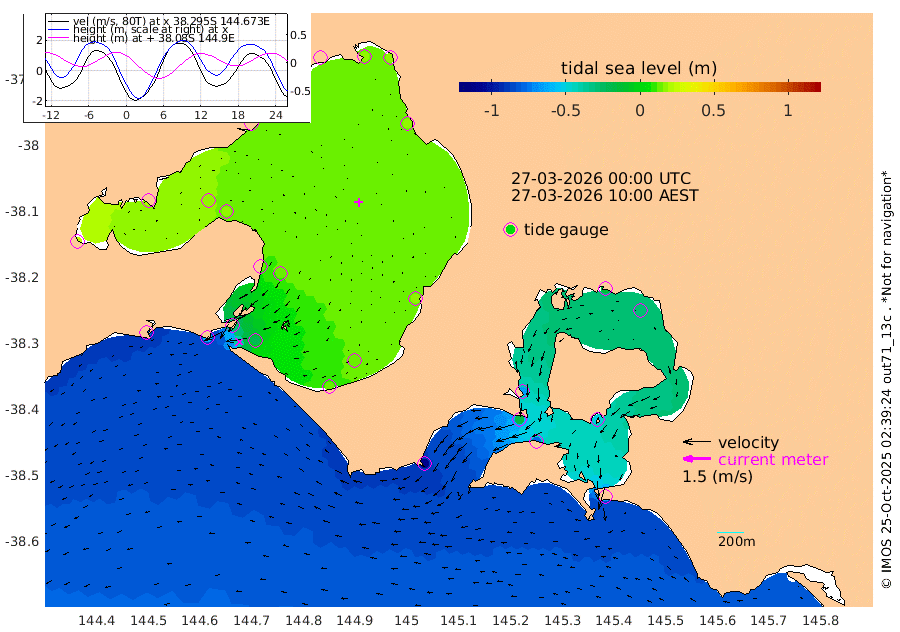 -66cm San Remo -49cm Elizabeth Island -29cm Bouchier Channel -12cm Tooradin -76cm Cowes Jetty -67cm Western Port (Stony Point) -17cm Western Port (Sandy Point) -107cm Flinders Jetty 16cm Mornington 17cm Sandringham 15cm Rosebud Jetty 15cm Hovell Pile -19cm South Channel -63cm Point Lonsdale -32cm Queenscliff 14cm West Channel Pile -79cm Barwon Heads 13cm St Leonards 19cm Point Richards (Corio Bay) 17cm Point Richards Channel 23cm Geelong 15cm Werribee 17cm Altona 20cm Wilson Spit 19cm Melbourne (Williamstown) 18cm St Kilda
