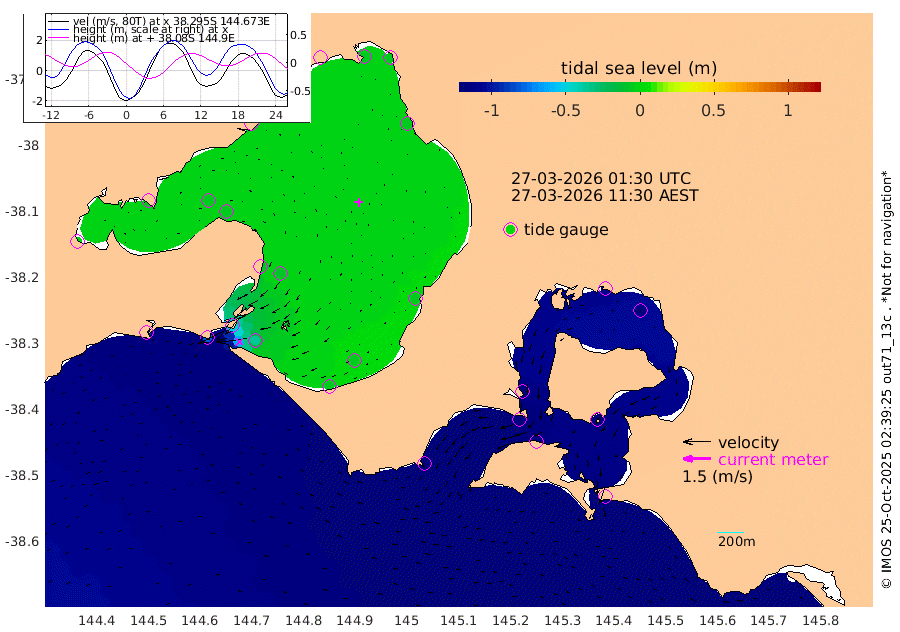 -137cm San Remo -129cm Elizabeth Island -124cm Bouchier Channel -108cm Tooradin -137cm Cowes Jetty -136cm Western Port (Stony Point) -114cm Western Port (Sandy Point) -138cm Flinders Jetty -6cm Mornington -7cm Sandringham -7cm Rosebud Jetty -7cm Hovell Pile -37cm South Channel -79cm Point Lonsdale -49cm Queenscliff -8cm West Channel Pile -94cm Barwon Heads -9cm St Leonards -7cm Point Richards (Corio Bay) -7cm Point Richards Channel -3cm Geelong -5cm Werribee -7cm Altona -6cm Wilson Spit -5cm Melbourne (Williamstown) -6cm St Kilda