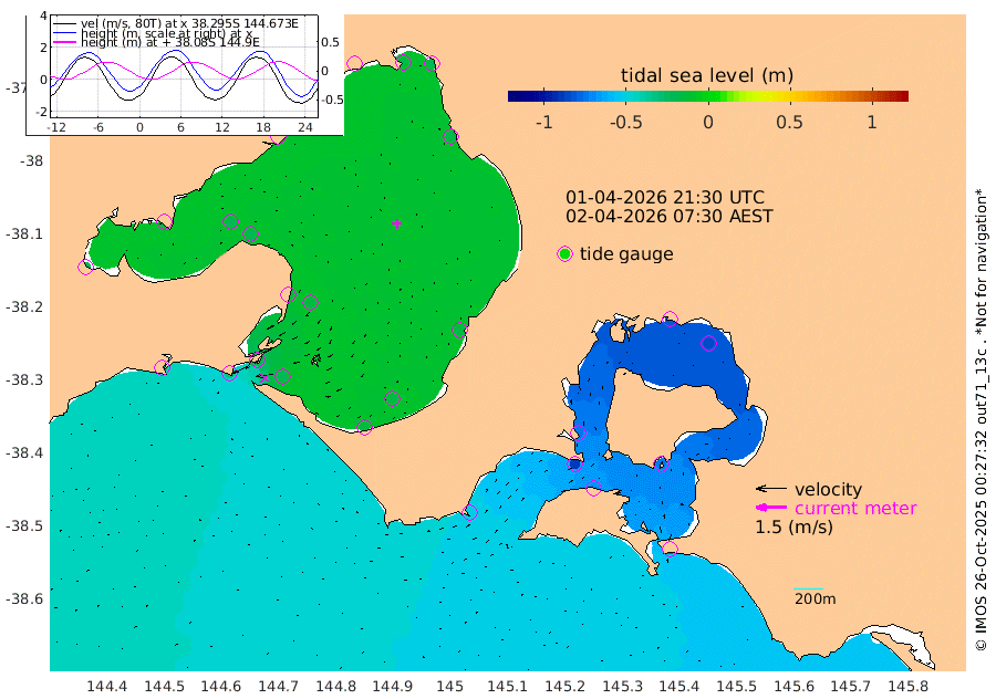 -78cm San Remo -75cm Elizabeth Island -86cm Bouchier Channel -82cm Tooradin -70cm Cowes Jetty -72cm Western Port (Stony Point) -88cm Western Port (Sandy Point) -49cm Flinders Jetty -17cm Mornington -17cm Sandringham -16cm Rosebud Jetty -16cm Hovell Pile -20cm South Channel -30cm Point Lonsdale -22cm Queenscliff -17cm West Channel Pile -33cm Barwon Heads -18cm St Leonards -19cm Point Richards (Corio Bay) -19cm Point Richards Channel -19cm Geelong -15cm Werribee -18cm Altona -21cm Wilson Spit -18cm Melbourne (Williamstown) -19cm St Kilda