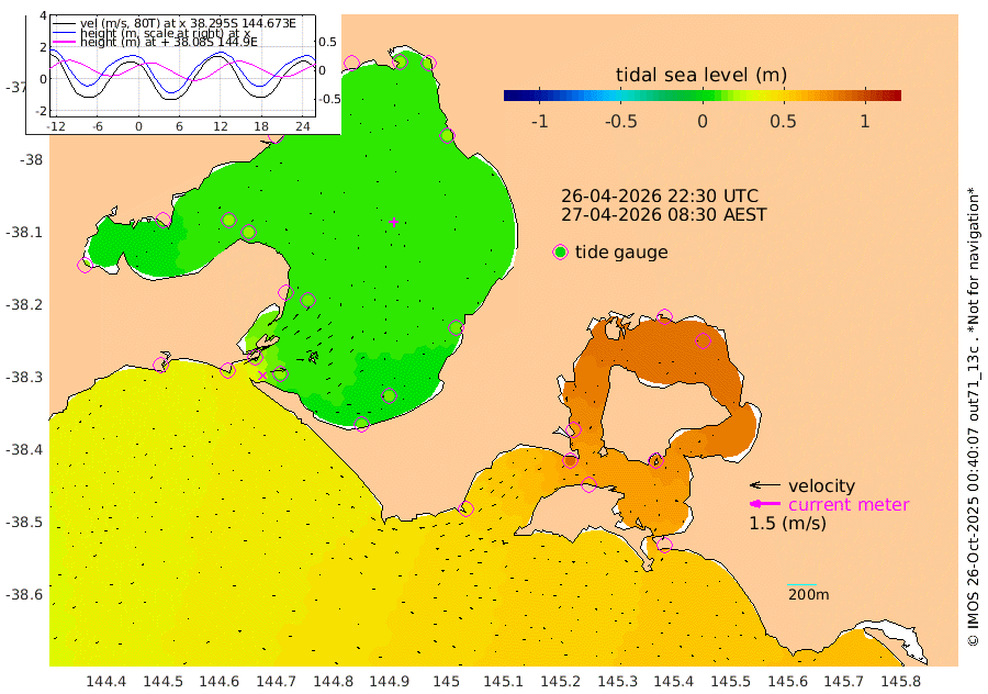 73cm San Remo 77cm Elizabeth Island 86cm Bouchier Channel 86cm Tooradin 63cm Cowes Jetty 70cm Western Port (Stony Point) 88cm Western Port (Sandy Point) 41cm Flinders Jetty 13cm Mornington 15cm Sandringham 14cm Rosebud Jetty 14cm Hovell Pile 17cm South Channel 21cm Point Lonsdale 17cm Queenscliff 14cm West Channel Pile 25cm Barwon Heads 14cm St Leonards 16cm Point Richards (Corio Bay) 15cm Point Richards Channel 16cm Geelong 13cm Werribee 15cm Altona 16cm Wilson Spit 15cm Melbourne (Williamstown) 16cm St Kilda