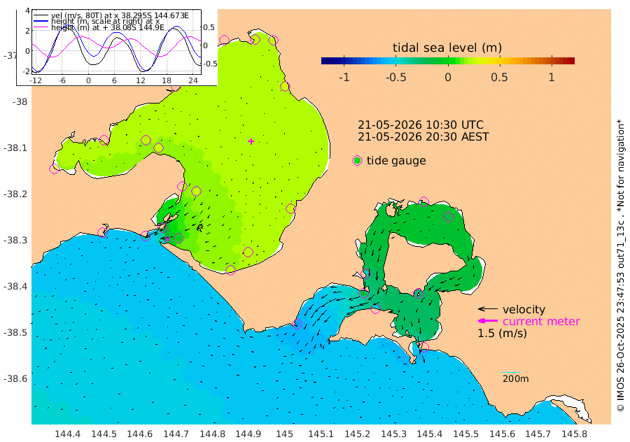 -48cm San Remo -30cm Elizabeth Island -18cm Bouchier Channel -7cm Tooradin -49cm Cowes Jetty -42cm Western Port (Stony Point) -13cm Western Port (Sandy Point) -66cm Flinders Jetty 26cm Mornington 27cm Sandringham 24cm Rosebud Jetty 23cm Hovell Pile 0cm South Channel -32cm Point Lonsdale -9cm Queenscliff 23cm West Channel Pile -53cm Barwon Heads 22cm St Leonards 27cm Point Richards (Corio Bay) 25cm Point Richards Channel 30cm Geelong 22cm Werribee 26cm Altona 27cm Wilson Spit 26cm Melbourne (Williamstown) 26cm St Kilda