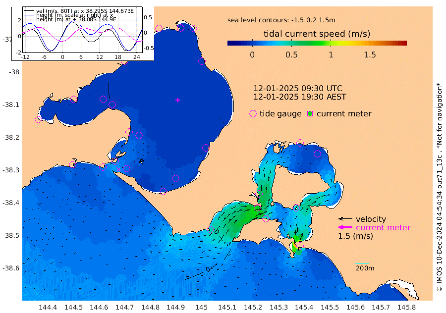 -32cm San Remo -46cm Elizabeth Island -62cm Bouchier Channel -66cm Tooradin -22cm Cowes Jetty -28cm Western Port (Stony Point) -70cm Western Port (Sandy Point) 12cm Flinders Jetty -41cm Mornington -42cm Sandringham -41cm Rosebud Jetty -39cm Hovell Pile -21cm South Channel 0cm Point Lonsdale -15cm Queenscliff -39cm West Channel Pile 14cm Barwon Heads -39cm St Leonards -44cm Point Richards (Corio Bay) -42cm Point Richards Channel -46cm Geelong -36cm Werribee -42cm Altona -45cm Wilson Spit -43cm Melbourne (Williamstown) -43cm St Kilda