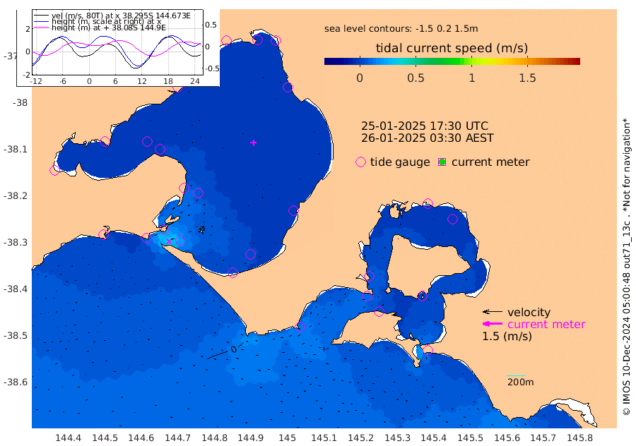 -24cm San Remo -25cm Elizabeth Island -38cm Bouchier Channel -41cm Tooradin -16cm Cowes Jetty -20cm Western Port (Stony Point) -37cm Western Port (Sandy Point) 0cm Flinders Jetty 5cm Mornington 2cm Sandringham 6cm Rosebud Jetty 4cm Hovell Pile 6cm South Channel 7cm Point Lonsdale 8cm Queenscliff 4cm West Channel Pile 3cm Barwon Heads 5cm St Leonards 3cm Point Richards (Corio Bay) 3cm Point Richards Channel 2cm Geelong 5cm Werribee 2cm Altona 3cm Wilson Spit 3cm Melbourne (Williamstown) 3cm St Kilda