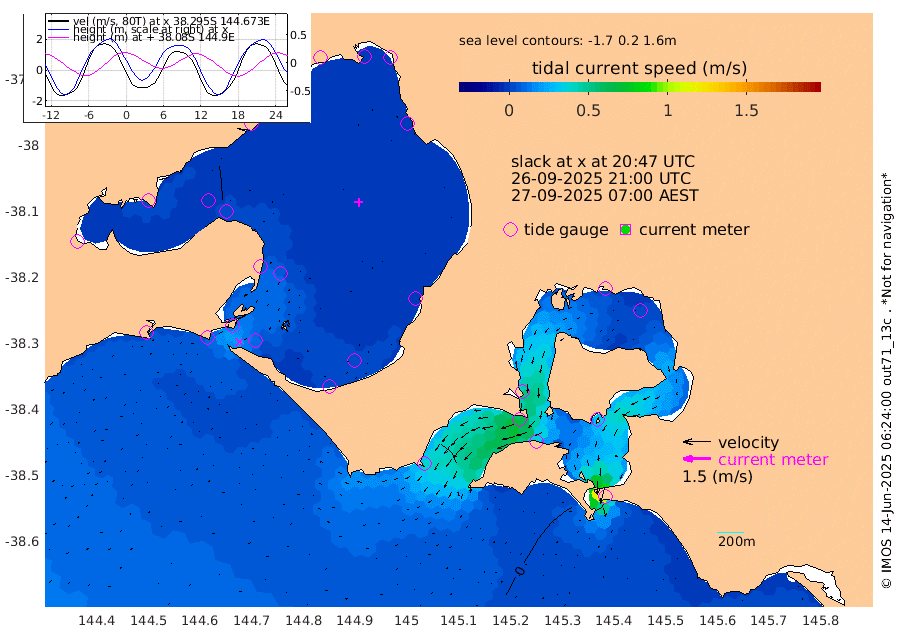26cm San Remo 40cm Elizabeth Island 62cm Bouchier Channel 73cm Tooradin 23cm Cowes Jetty 29cm Western Port (Stony Point) 63cm Western Port (Sandy Point) -11cm Flinders Jetty 24cm Mornington 26cm Sandringham 23cm Rosebud Jetty 24cm Hovell Pile 10cm South Channel -6cm Point Lonsdale 4cm Queenscliff 24cm West Channel Pile -17cm Barwon Heads 24cm St Leonards 29cm Point Richards (Corio Bay) 27cm Point Richards Channel 32cm Geelong 27cm Werribee 27cm Altona 28cm Wilson Spit 27cm Melbourne (Williamstown) 28cm St Kilda