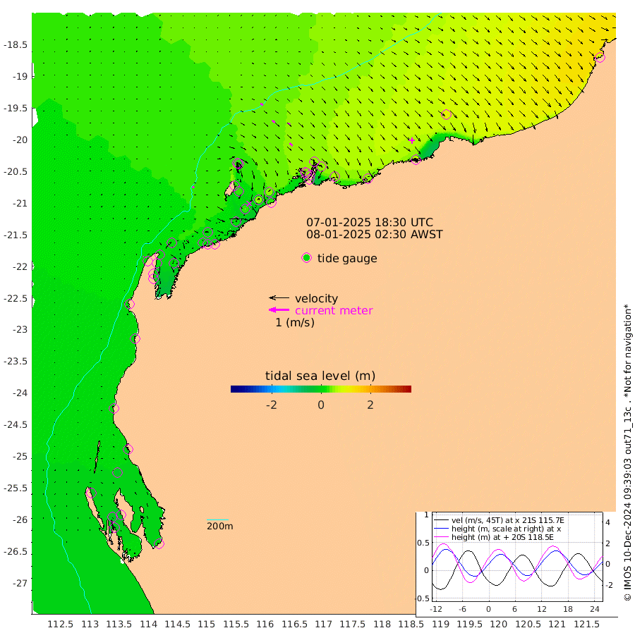 8cm/s 59T +12cm/s rms + 5cm/s -173T. NWSBAR 206m 4cm/s 45T +22cm/s rms + 10cm/s -148T. TAN100 109m 12cm/s 108T +11cm/s rms + 8cm/s -129T. PIL200 208m 17cm/s 129T +13cm/s rms + 7cm/s -137T. PIL100 105m 19cm/s 132T +12cm/s rms + 2cm/s -92T. PIL050 55m 4cm/s 52T +18cm/s rms + 4cm/s -149T. NRSNIN 61m 12cm/s 124T +6cm/s rms + 3cm/s 112T. NW Shelf M6 65m -12cm Withnell Point -21cm Denham -19cm Shark Bay (Inr Bn) -16cm Shark Bay -19cm Useless Loop 2cm Hamelin Pool -3cm Carnarvon 5cm Cape Cuvier 8cm Coral Bay 7cm Norwegian Bay 16cm Badjirrajirra 11cm Tantabiddi 12cm Point Murat 13cm Exmouth 14cm Learmonth 19cm Y Island 14cm North Muiron Island 17cm Roller 21cm Ashburton North 21cm Onslow (Beadon Creek) 22cm Thevenard Island 15cm Large Island 27cm North Sandy Island 28cm Barrow Island (Wapet Landing) 24cm Barrow Island (Tanker Mooring) 51cm Withnell Bay 21cm Trimouille Island 24cm North West Island 23cm Fortescue Road 46cm Steamboat Island 50cm Sholl Island 49cm Fairway Beacon 53cm Mawby Island 52cm Dampier (King Bay) 48cm Cape Legendre 47cm Hauy Island 62cm Port Walcott (Cape Lambert) 51cm Depuch Island 82cm Port Hedland 105cm Bedout Island 90cm Lagrange Bay