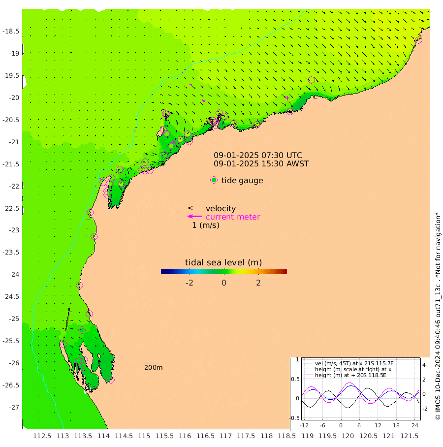 5cm/s 76T +12cm/s rms + 5cm/s -173T. NWSBAR 206m 7cm/s 39T +22cm/s rms + 10cm/s -148T. TAN100 109m 10cm/s 102T +11cm/s rms + 8cm/s -129T. PIL200 208m 17cm/s 121T +13cm/s rms + 7cm/s -137T. PIL100 105m 21cm/s 123T +12cm/s rms + 2cm/s -92T. PIL050 55m 8cm/s 47T +18cm/s rms + 4cm/s -149T. NRSNIN 61m 15cm/s 117T +6cm/s rms + 3cm/s 112T. NW Shelf M6 65m 25cm Withnell Point 13cm Denham 13cm Shark Bay (Inr Bn) 11cm Shark Bay 7cm Useless Loop -10cm Hamelin Pool 39cm Carnarvon 42cm Cape Cuvier 44cm Coral Bay 44cm Norwegian Bay 42cm Badjirrajirra 43cm Tantabiddi 41cm Point Murat 40cm Exmouth 43cm Learmonth 45cm Y Island 45cm North Muiron Island 45cm Roller 48cm Ashburton North 47cm Onslow (Beadon Creek) 48cm Thevenard Island 29cm Large Island 42cm North Sandy Island 49cm Barrow Island (Wapet Landing) 38cm Barrow Island (Tanker Mooring) 61cm Withnell Bay 49cm Trimouille Island 47cm North West Island 21cm Fortescue Road 60cm Steamboat Island 51cm Sholl Island 59cm Fairway Beacon 62cm Mawby Island 61cm Dampier (King Bay) 65cm Cape Legendre 49cm Hauy Island 62cm Port Walcott (Cape Lambert) 57cm Depuch Island 70cm Port Hedland 67cm Bedout Island 43cm Lagrange Bay