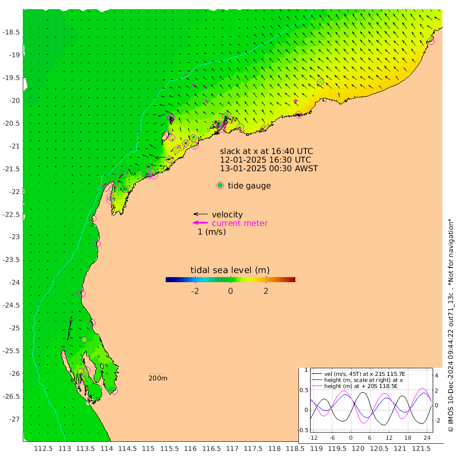 7cm/s -118T +12cm/s rms + 5cm/s -173T. NWSBAR 206m 9cm/s -134T +22cm/s rms + 10cm/s -148T. TAN100 109m 13cm/s -74T +11cm/s rms + 8cm/s -129T. PIL200 208m 23cm/s -51T +13cm/s rms + 7cm/s -137T. PIL100 105m 27cm/s -46T +12cm/s rms + 2cm/s -92T. PIL050 55m 10cm/s -131T +18cm/s rms + 4cm/s -149T. NRSNIN 61m 29cm/s -43T +6cm/s rms + 3cm/s 112T. NW Shelf M6 65m 22cm Withnell Point 46cm Denham 45cm Shark Bay (Inr Bn) 44cm Shark Bay 50cm Useless Loop 13cm Hamelin Pool 11cm Carnarvon -7cm Cape Cuvier -7cm Coral Bay -8cm Norwegian Bay 31cm Badjirrajirra -3cm Tantabiddi 16cm Point Murat 26cm Exmouth 30cm Learmonth 16cm Y Island 5cm North Muiron Island 7cm Roller 8cm Ashburton North 16cm Onslow (Beadon Creek) 10cm Thevenard Island 53cm Large Island 50cm North Sandy Island 27cm Barrow Island (Wapet Landing) 59cm Barrow Island (Tanker Mooring) 32cm Withnell Bay 22cm Trimouille Island 20cm North West Island 57cm Fortescue Road 40cm Steamboat Island 37cm Sholl Island 33cm Fairway Beacon 32cm Mawby Island 32cm Dampier (King Bay) 28cm Cape Legendre 47cm Hauy Island 50cm Port Walcott (Cape Lambert) 67cm Depuch Island 62cm Port Hedland 52cm Bedout Island 44cm Lagrange Bay