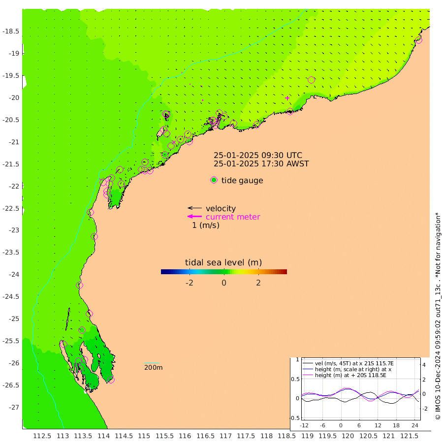 1cm/s -1T +12cm/s rms + 5cm/s -173T. NWSBAR 206m 3cm/s 38T +22cm/s rms + 10cm/s -148T. TAN100 109m 3cm/s 89T +11cm/s rms + 8cm/s -129T. PIL200 208m 5cm/s 110T +13cm/s rms + 7cm/s -137T. PIL100 105m 8cm/s 108T +12cm/s rms + 2cm/s -92T. PIL050 55m 4cm/s 42T +18cm/s rms + 4cm/s -149T. NRSNIN 61m 8cm/s 114T +6cm/s rms + 3cm/s 112T. NW Shelf M6 65m 36cm Withnell Point 33cm Denham 31cm Shark Bay (Inr Bn) 34cm Shark Bay 27cm Useless Loop -9cm Hamelin Pool 46cm Carnarvon 40cm Cape Cuvier 41cm Coral Bay 44cm Norwegian Bay 50cm Badjirrajirra 41cm Tantabiddi 45cm Point Murat 48cm Exmouth 42cm Learmonth 51cm Y Island 45cm North Muiron Island 48cm Roller 46cm Ashburton North 48cm Onslow (Beadon Creek) 48cm Thevenard Island 26cm Large Island 53cm North Sandy Island 50cm Barrow Island (Wapet Landing) 51cm Barrow Island (Tanker Mooring) 57cm Withnell Bay 51cm Trimouille Island 42cm North West Island 23cm Fortescue Road 58cm Steamboat Island 52cm Sholl Island 55cm Fairway Beacon 55cm Mawby Island 56cm Dampier (King Bay) 62cm Cape Legendre 53cm Hauy Island 59cm Port Walcott (Cape Lambert) 60cm Depuch Island 63cm Port Hedland 61cm Bedout Island 46cm Lagrange Bay