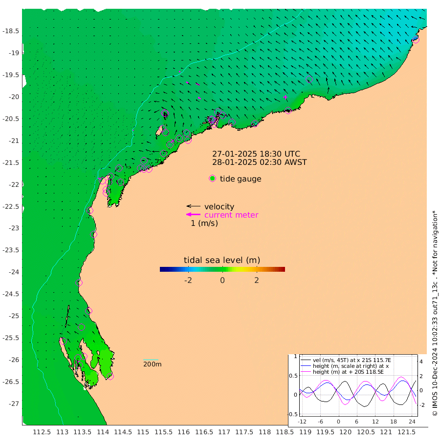 4cm/s -154T +12cm/s rms + 5cm/s -173T. NWSBAR 206m 9cm/s -138T +22cm/s rms + 10cm/s -148T. TAN100 109m 10cm/s -74T +11cm/s rms + 8cm/s -129T. PIL200 208m 18cm/s -57T +13cm/s rms + 7cm/s -137T. PIL100 105m 23cm/s -55T +12cm/s rms + 2cm/s -92T. PIL050 55m 10cm/s -136T +18cm/s rms + 4cm/s -149T. NRSNIN 61m 29cm/s -62T +6cm/s rms + 3cm/s 112T. NW Shelf M6 65m -21cm Withnell Point 3cm Denham 7cm Shark Bay (Inr Bn) 2cm Shark Bay 17cm Useless Loop 23cm Hamelin Pool -42cm Carnarvon -44cm Cape Cuvier -44cm Coral Bay -47cm Norwegian Bay -46cm Badjirrajirra -45cm Tantabiddi -44cm Point Murat -44cm Exmouth -43cm Learmonth -50cm Y Island -47cm North Muiron Island -53cm Roller -53cm Ashburton North -52cm Onslow (Beadon Creek) -54cm Thevenard Island -47cm Large Island -57cm North Sandy Island -57cm Barrow Island (Wapet Landing) -52cm Barrow Island (Tanker Mooring) -76cm Withnell Bay -50cm Trimouille Island -53cm North West Island -61cm Fortescue Road -74cm Steamboat Island -47cm Sholl Island -75cm Fairway Beacon -78cm Mawby Island -76cm Dampier (King Bay) -86cm Cape Legendre -74cm Hauy Island -81cm Port Walcott (Cape Lambert) -90cm Depuch Island -93cm Port Hedland -87cm Bedout Island -218cm Lagrange Bay