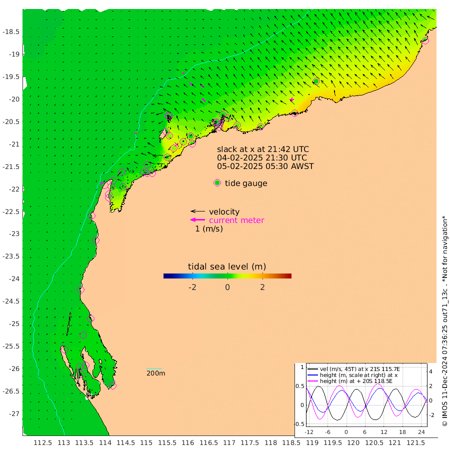 10cm/s -91T +12cm/s rms + 5cm/s -173T. NWSBAR 206m 9cm/s -142T +22cm/s rms + 10cm/s -148T. TAN100 109m 14cm/s -69T +11cm/s rms + 8cm/s -129T. PIL200 208m 24cm/s -51T +13cm/s rms + 7cm/s -137T. PIL100 105m 30cm/s -48T +12cm/s rms + 2cm/s -92T. PIL050 55m 8cm/s -132T +18cm/s rms + 4cm/s -149T. NRSNIN 61m 29cm/s -52T +6cm/s rms + 3cm/s 112T. NW Shelf M6 65m 1cm Withnell Point 0cm Denham -3cm Shark Bay (Inr Bn) -1cm Shark Bay -10cm Useless Loop -11cm Hamelin Pool 1cm Carnarvon -12cm Cape Cuvier -15cm Coral Bay -10cm Norwegian Bay 24cm Badjirrajirra -11cm Tantabiddi 8cm Point Murat 18cm Exmouth 25cm Learmonth 6cm Y Island -5cm North Muiron Island 1cm Roller -1cm Ashburton North 5cm Onslow (Beadon Creek) 1cm Thevenard Island 26cm Large Island 50cm North Sandy Island 18cm Barrow Island (Wapet Landing) 52cm Barrow Island (Tanker Mooring) 19cm Withnell Bay 18cm Trimouille Island 5cm North West Island 30cm Fortescue Road 22cm Steamboat Island 55cm Sholl Island 22cm Fairway Beacon 20cm Mawby Island 20cm Dampier (King Bay) 21cm Cape Legendre 43cm Hauy Island 37cm Port Walcott (Cape Lambert) 41cm Depuch Island 45cm Port Hedland 11cm Bedout Island -23cm Lagrange Bay
