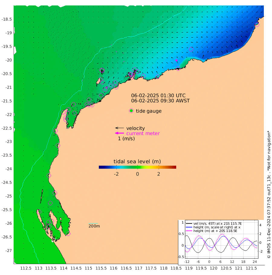 2cm/s -169T +12cm/s rms + 5cm/s -173T. NWSBAR 206m 0cm/s -93T +22cm/s rms + 10cm/s -148T. TAN100 109m 3cm/s -75T +11cm/s rms + 8cm/s -129T. PIL200 208m 4cm/s -81T +13cm/s rms + 7cm/s -137T. PIL100 105m 6cm/s -86T +12cm/s rms + 2cm/s -92T. PIL050 55m 0cm/s 35T +18cm/s rms + 4cm/s -149T. NRSNIN 61m 4cm/s -139T +6cm/s rms + 3cm/s 112T. NW Shelf M6 65m -14cm Withnell Point -17cm Denham -16cm Shark Bay (Inr Bn) -18cm Shark Bay -18cm Useless Loop -2cm Hamelin Pool -25cm Carnarvon -18cm Cape Cuvier -22cm Coral Bay -24cm Norwegian Bay -65cm Badjirrajirra -28cm Tantabiddi -46cm Point Murat -56cm Exmouth -60cm Learmonth -56cm Y Island -40cm North Muiron Island -46cm Roller -52cm Ashburton North -57cm Onslow (Beadon Creek) -54cm Thevenard Island -51cm Large Island -95cm North Sandy Island -77cm Barrow Island (Wapet Landing) -96cm Barrow Island (Tanker Mooring) -109cm Withnell Bay -71cm Trimouille Island -57cm North West Island -69cm Fortescue Road -108cm Steamboat Island -115cm Sholl Island -107cm Fairway Beacon -107cm Mawby Island -109cm Dampier (King Bay) -109cm Cape Legendre -116cm Hauy Island -137cm Port Walcott (Cape Lambert) -137cm Depuch Island -170cm Port Hedland -180cm Bedout Island -135cm Lagrange Bay