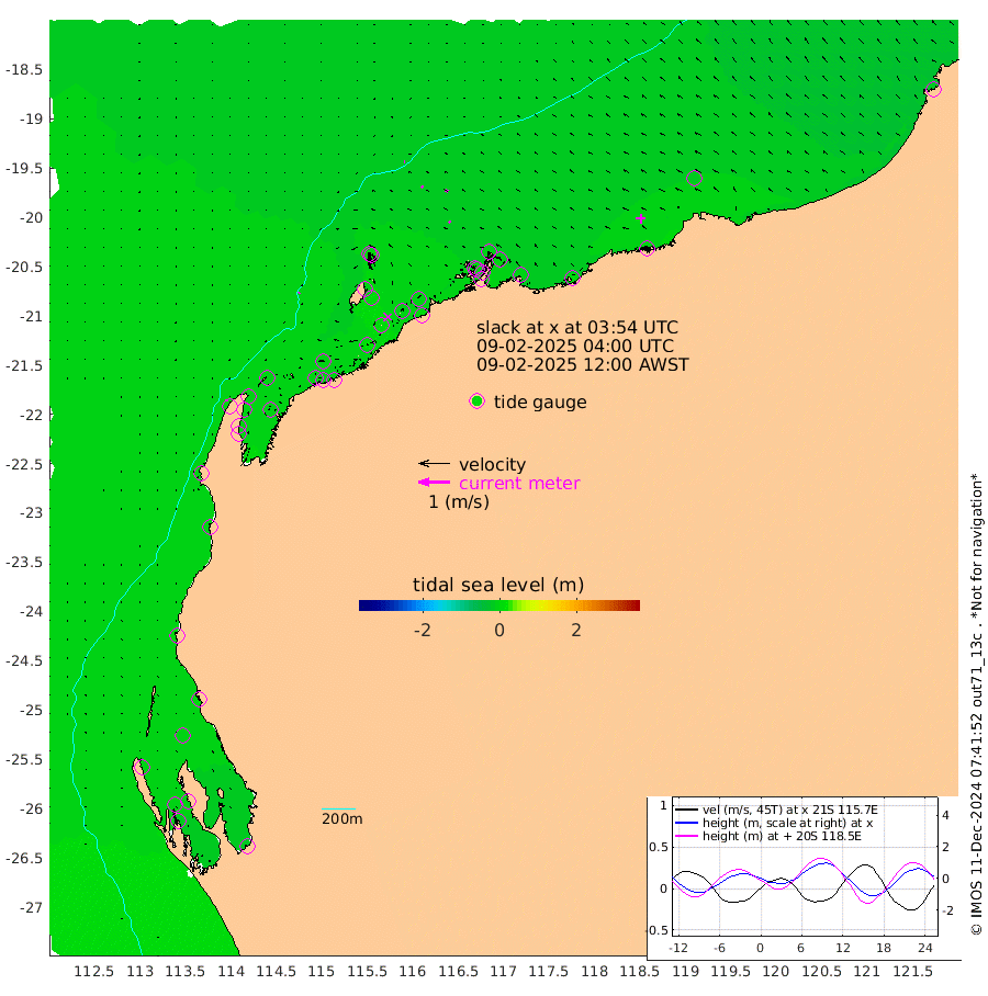 3cm/s -134T +12cm/s rms + 5cm/s -173T. NWSBAR 206m 1cm/s 28T +22cm/s rms + 10cm/s -148T. TAN100 109m 4cm/s -78T +11cm/s rms + 8cm/s -129T. PIL200 208m 6cm/s -62T +13cm/s rms + 7cm/s -137T. PIL100 105m 7cm/s -55T +12cm/s rms + 2cm/s -92T. PIL050 55m 2cm/s 28T +18cm/s rms + 4cm/s -149T. NRSNIN 61m 9cm/s -65T +6cm/s rms + 3cm/s 112T. NW Shelf M6 65m -2cm Withnell Point -10cm Denham -11cm Shark Bay (Inr Bn) -11cm Shark Bay -20cm Useless Loop -13cm Hamelin Pool 2cm Carnarvon 1cm Cape Cuvier -1cm Coral Bay -3cm Norwegian Bay -5cm Badjirrajirra -1cm Tantabiddi -3cm Point Murat -4cm Exmouth -1cm Learmonth -7cm Y Island -4cm North Muiron Island -4cm Roller -5cm Ashburton North -5cm Onslow (Beadon Creek) -5cm Thevenard Island 20cm Large Island 7cm North Sandy Island -5cm Barrow Island (Wapet Landing) 0cm Barrow Island (Tanker Mooring) -8cm Withnell Bay 4cm Trimouille Island -3cm North West Island 8cm Fortescue Road -2cm Steamboat Island -6cm Sholl Island -7cm Fairway Beacon -8cm Mawby Island -8cm Dampier (King Bay) -10cm Cape Legendre -3cm Hauy Island -7cm Port Walcott (Cape Lambert) 11cm Depuch Island -10cm Port Hedland -20cm Bedout Island -21cm Lagrange Bay