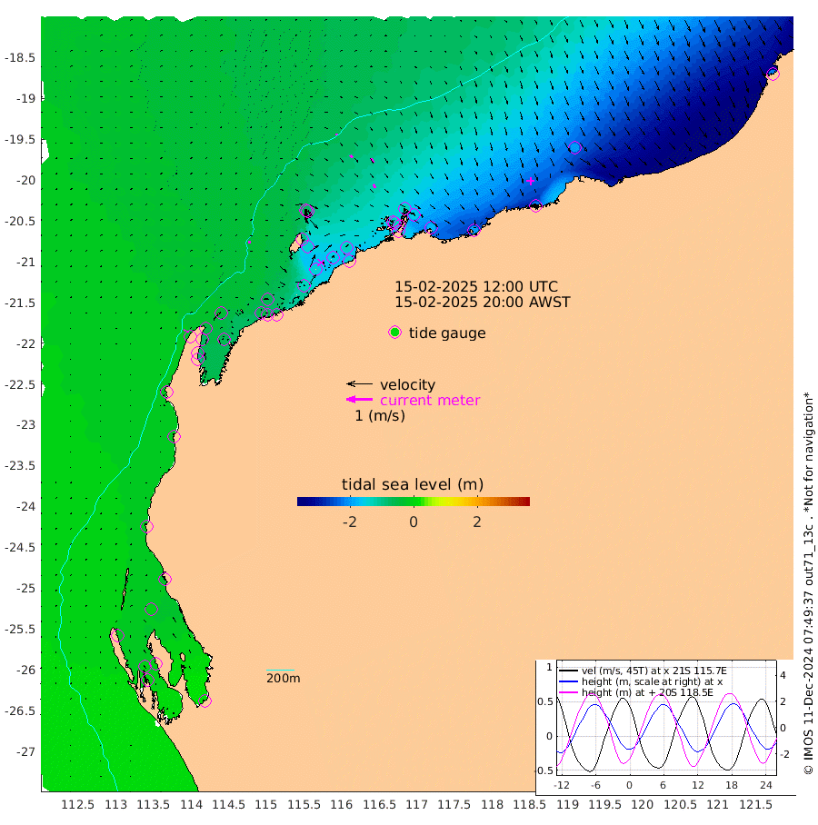 8cm/s 95T +12cm/s rms + 5cm/s -173T. NWSBAR 206m 4cm/s 38T +22cm/s rms + 10cm/s -148T. TAN100 109m 6cm/s 115T +11cm/s rms + 8cm/s -129T. PIL200 208m 12cm/s 142T +13cm/s rms + 7cm/s -137T. PIL100 105m 16cm/s 147T +12cm/s rms + 2cm/s -92T. PIL050 55m 4cm/s 47T +18cm/s rms + 4cm/s -149T. NRSNIN 61m 19cm/s 140T +6cm/s rms + 3cm/s 112T. NW Shelf M6 65m -16cm Withnell Point -9cm Denham -9cm Shark Bay (Inr Bn) -6cm Shark Bay 3cm Useless Loop 13cm Hamelin Pool -28cm Carnarvon -14cm Cape Cuvier -16cm Coral Bay -19cm Norwegian Bay -81cm Badjirrajirra -24cm Tantabiddi -53cm Point Murat -70cm Exmouth -92cm Learmonth -59cm Y Island -39cm North Muiron Island -50cm Roller -56cm Ashburton North -65cm Onslow (Beadon Creek) -59cm Thevenard Island -124cm Large Island -145cm North Sandy Island -97cm Barrow Island (Wapet Landing) -140cm Barrow Island (Tanker Mooring) -135cm Withnell Bay -100cm Trimouille Island -70cm North West Island -137cm Fortescue Road -126cm Steamboat Island -153cm Sholl Island -133cm Fairway Beacon -134cm Mawby Island -136cm Dampier (King Bay) -133cm Cape Legendre -156cm Hauy Island -178cm Port Walcott (Cape Lambert) -195cm Depuch Island -224cm Port Hedland -192cm Bedout Island -214cm Lagrange Bay