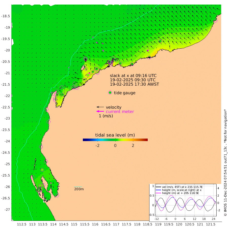 9cm/s -114T +12cm/s rms + 5cm/s -173T. NWSBAR 206m 8cm/s -138T +22cm/s rms + 10cm/s -148T. TAN100 109m 16cm/s -73T +11cm/s rms + 8cm/s -129T. PIL200 208m 26cm/s -49T +13cm/s rms + 7cm/s -137T. PIL100 105m 29cm/s -45T +12cm/s rms + 2cm/s -92T. PIL050 55m 7cm/s -129T +18cm/s rms + 4cm/s -149T. NRSNIN 61m 28cm/s -49T +6cm/s rms + 3cm/s 112T. NW Shelf M6 65m 21cm Withnell Point 38cm Denham 34cm Shark Bay (Inr Bn) 35cm Shark Bay 37cm Useless Loop 0cm Hamelin Pool 18cm Carnarvon 2cm Cape Cuvier 1cm Coral Bay 3cm Norwegian Bay 29cm Badjirrajirra 1cm Tantabiddi 17cm Point Murat 25cm Exmouth 26cm Learmonth 14cm Y Island 5cm North Muiron Island 5cm Roller 7cm Ashburton North 11cm Onslow (Beadon Creek) 7cm Thevenard Island 46cm Large Island 39cm North Sandy Island 18cm Barrow Island (Wapet Landing) 43cm Barrow Island (Tanker Mooring) 6cm Withnell Bay 15cm Trimouille Island 5cm North West Island 53cm Fortescue Road 1cm Steamboat Island 29cm Sholl Island 8cm Fairway Beacon 5cm Mawby Island 7cm Dampier (King Bay) 7cm Cape Legendre 17cm Hauy Island 15cm Port Walcott (Cape Lambert) 8cm Depuch Island 12cm Port Hedland -9cm Bedout Island -20cm Lagrange Bay